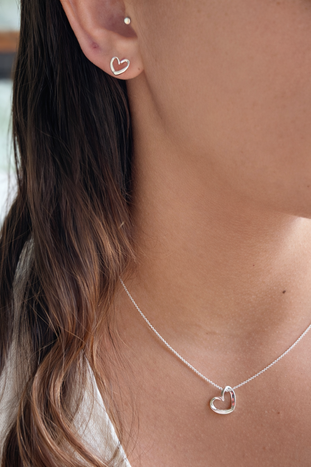 Este conjunto de corazón en plata italiana 925 destaca por su diseño minimalista y elegante, perfecto para complementar cualquier look con un toque delicado y sofisticado.